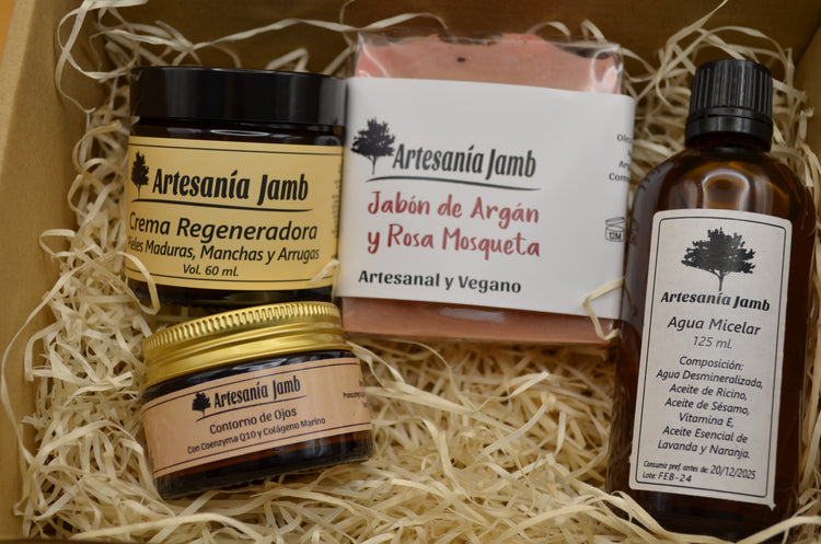6. KIT REGENERADOR: AGUA MICELAR + CREMA REGENERADORA + CONTORNO DE OJOS + JABÓN DE ROSA MOSQUETA