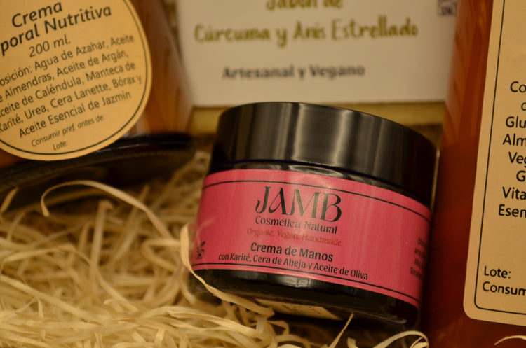 En esta caja diseñada para el cuidado corporal, no podía faltar producto estrella como la Crema Corporal Nutritiva. Se trata de nuestra loción corporal más nutritiva con diferencia y un producto imprescindible para los que sufren sequedad en su piel. Con base de Karité, que nos aporta hidratación profunda, está enriquecida además con aceites vegetales muy reparadores como Almendras Dulces o Argán y elementos más calmantes o analgésicos como Aceite de Caléndula y Urea. Tiene una textura más densa o mantequillosa pero se extiende y absorve con facilidad. El aroma delicado que aporta el Aceite Esencial de Jazmín nos hará sentir la paz de un bonito jardín en Primavera.