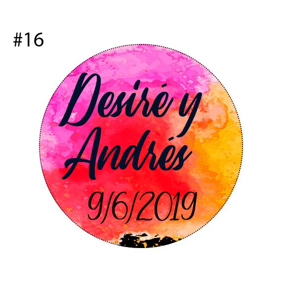Hay diferentes diseños de etiquetas para elegir, elige el diseño que más te guste y no olvides dejarnos un mensaje con los nombres y fecha de tu evento. Cuando tengamos tu etiqueta diseñada, te enviaremos una foto para que nos des tu aprobación.