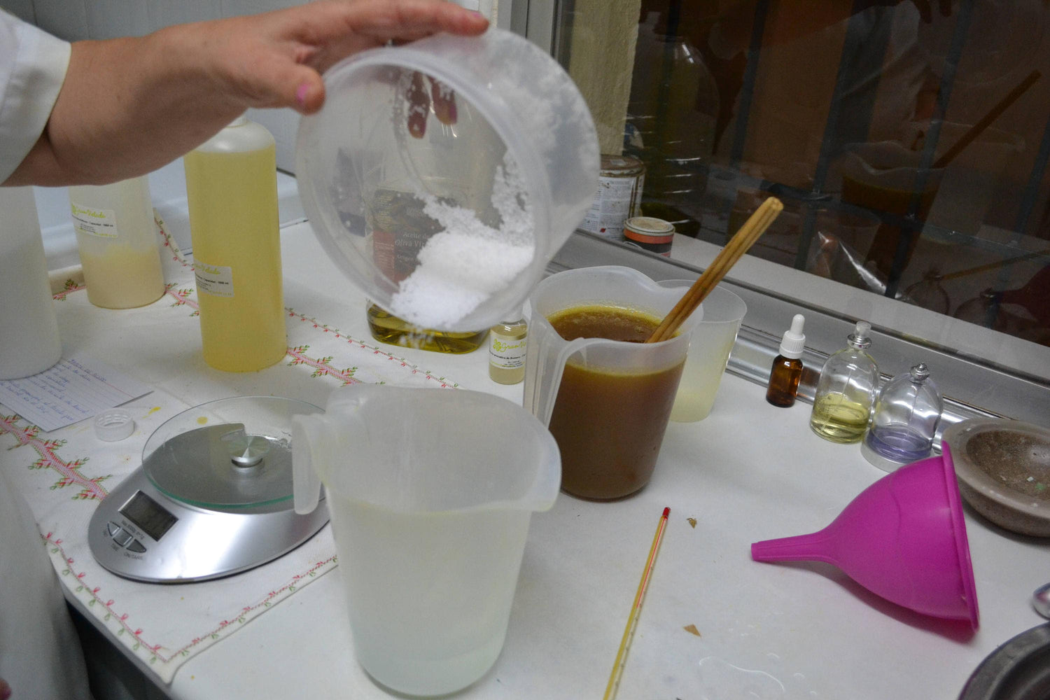 Pour garantir que notre savon conserve toutes les propriétés de ses huiles, nous utilisons le procédé de saponification à froid.
