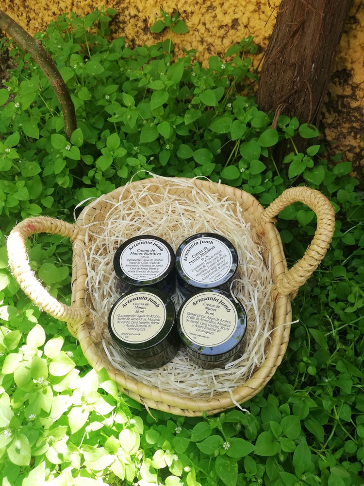 Crema de Manos Nutritiva: Agua de Azahar, Manteca de Karité, Aceite de Oliva, Aceite de Almendras, Cera de Abeja y Aceite Esencial de Jazmín.